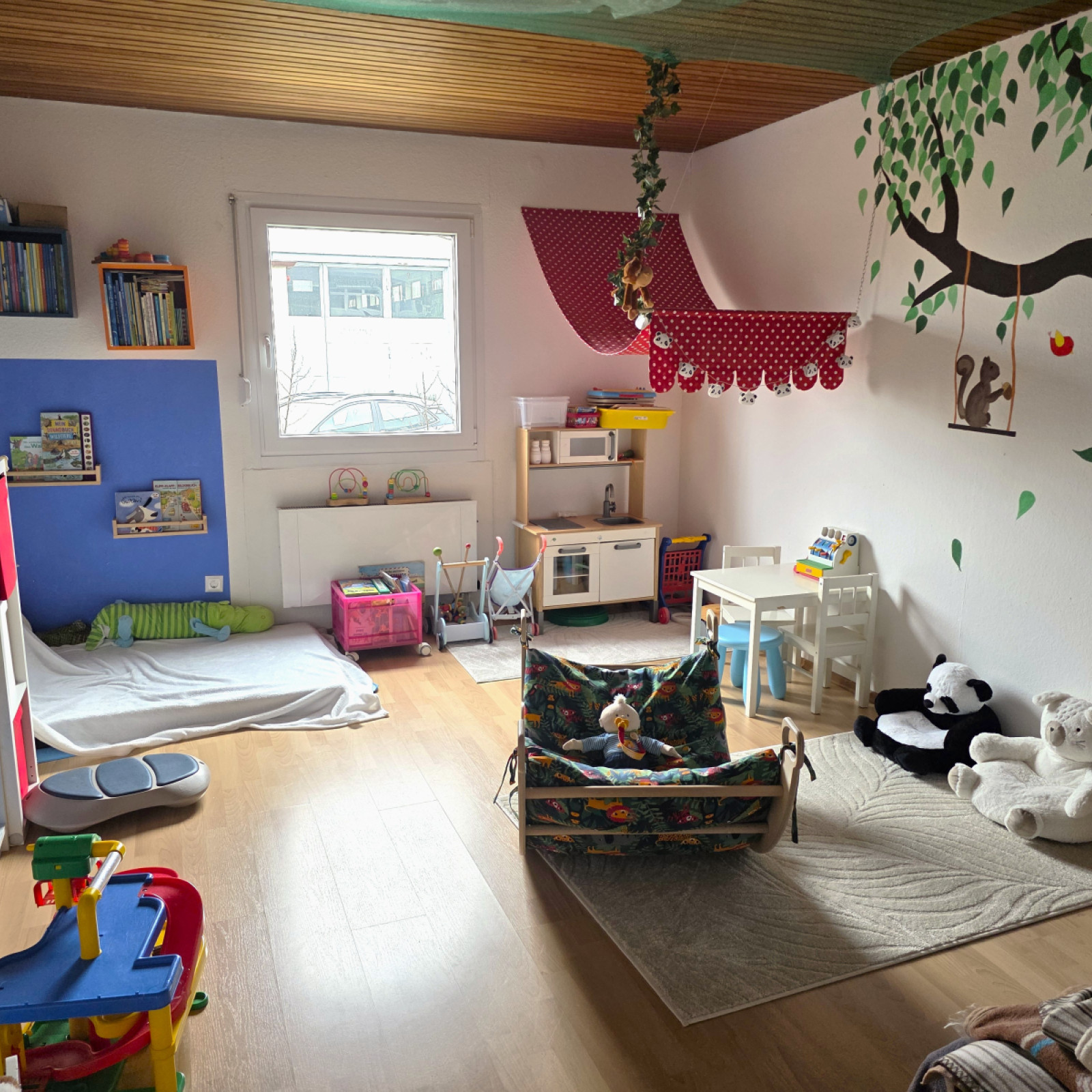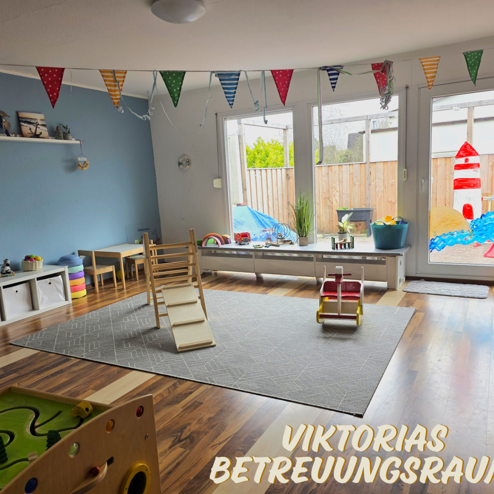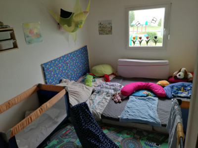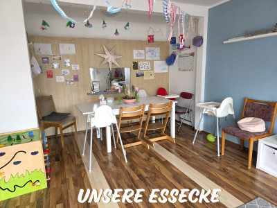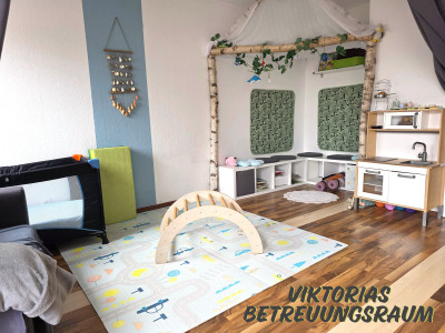 Wir sind ein Tagesmutterteam bestehend aus zwei Gruppen mit jeweils bis zu fünf Kindern im Alter von 0-3 Jahren. Ich bin mit meiner Gruppe die "Krümelkiste" und Viktoria und mir stehen drei Spielräume zur Verfügung, die zum Spielen, Toben, Kuscheln und noch vieles mehr einladen. Die Kinder dürfen frei entscheiden, wo sie spielen möchten, ich kann mich aber auch mit meiner Gruppe in meinem eigenen Bereich zurückziehen. Viele Aktivitäten werden von Viktoria und mir gemeinsam gestaltet.